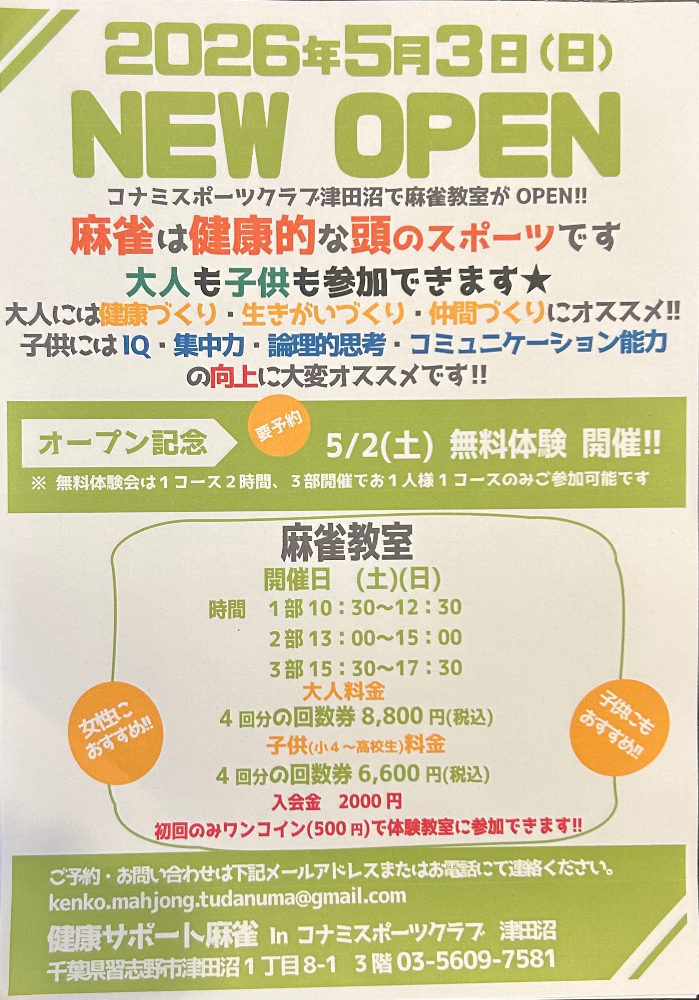 健康サポート麻雀inコナミスポーツクラブ津田沼